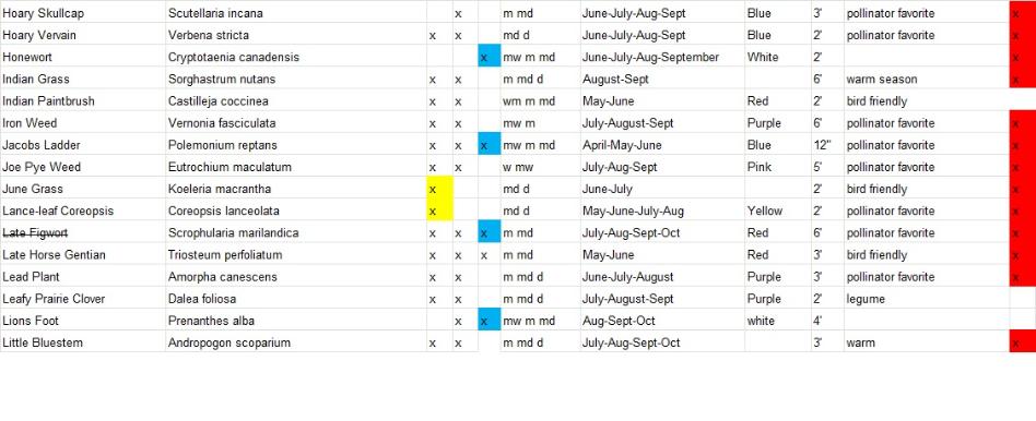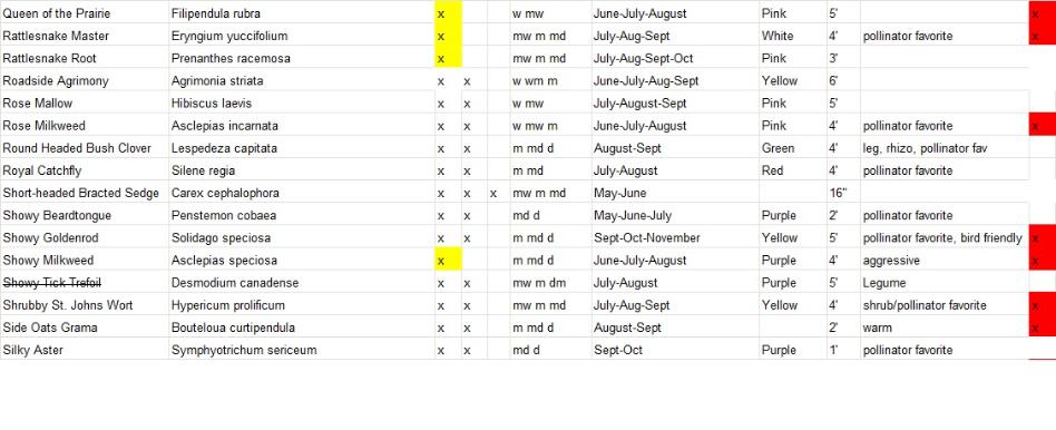 2026 Native Plant list and Descriptions and Photos